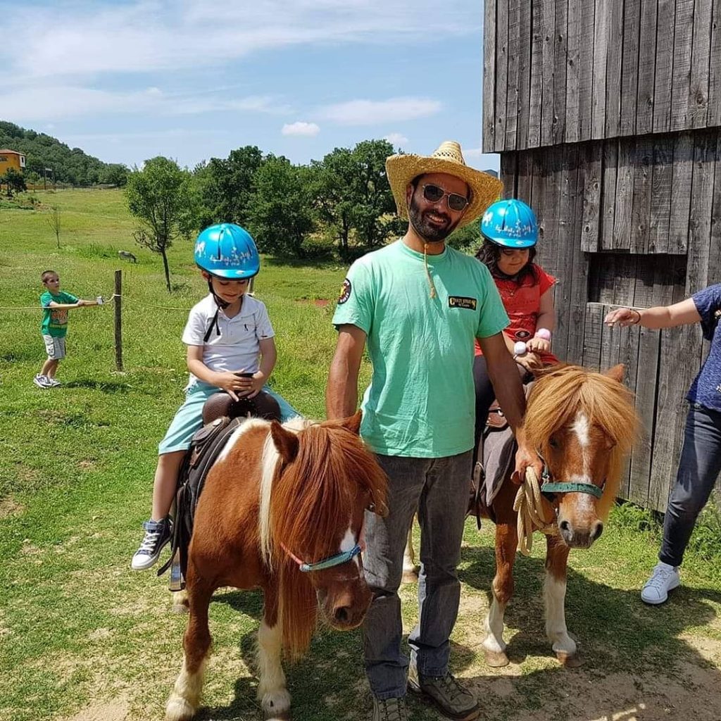 Δύο μικροί αναβάτες απολαμβάνουν μια ασφαλή και διασκεδαστική εμπειρία παιδικής ιππασίας σε οργανωμένο αγρόκτημα 40 στρεμμάτων στο Λευκοχώρι Θεσσαλονίκης.